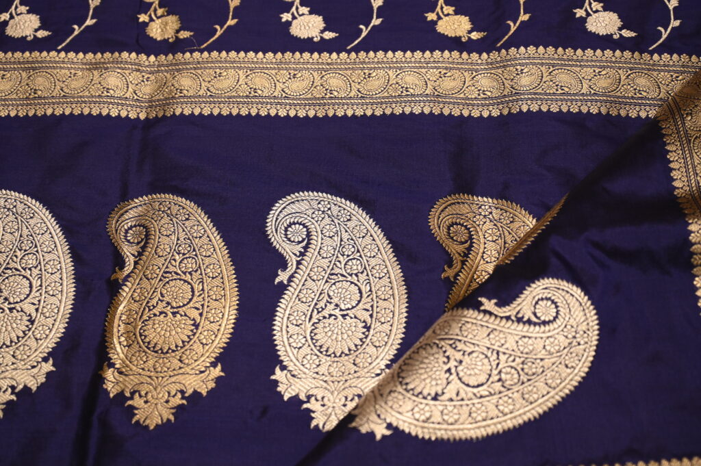 The craftsmanship behind each Banarasi saree is meticulous, with skilled artisans spending months on handweaving complex patterns using traditional jacquard and draw looms. These sarees are protected under the Geographical Indication (GI) tag, ensuring their authenticity and cultural heritage, supported by families like the Mehtas who have long preserved this art form.