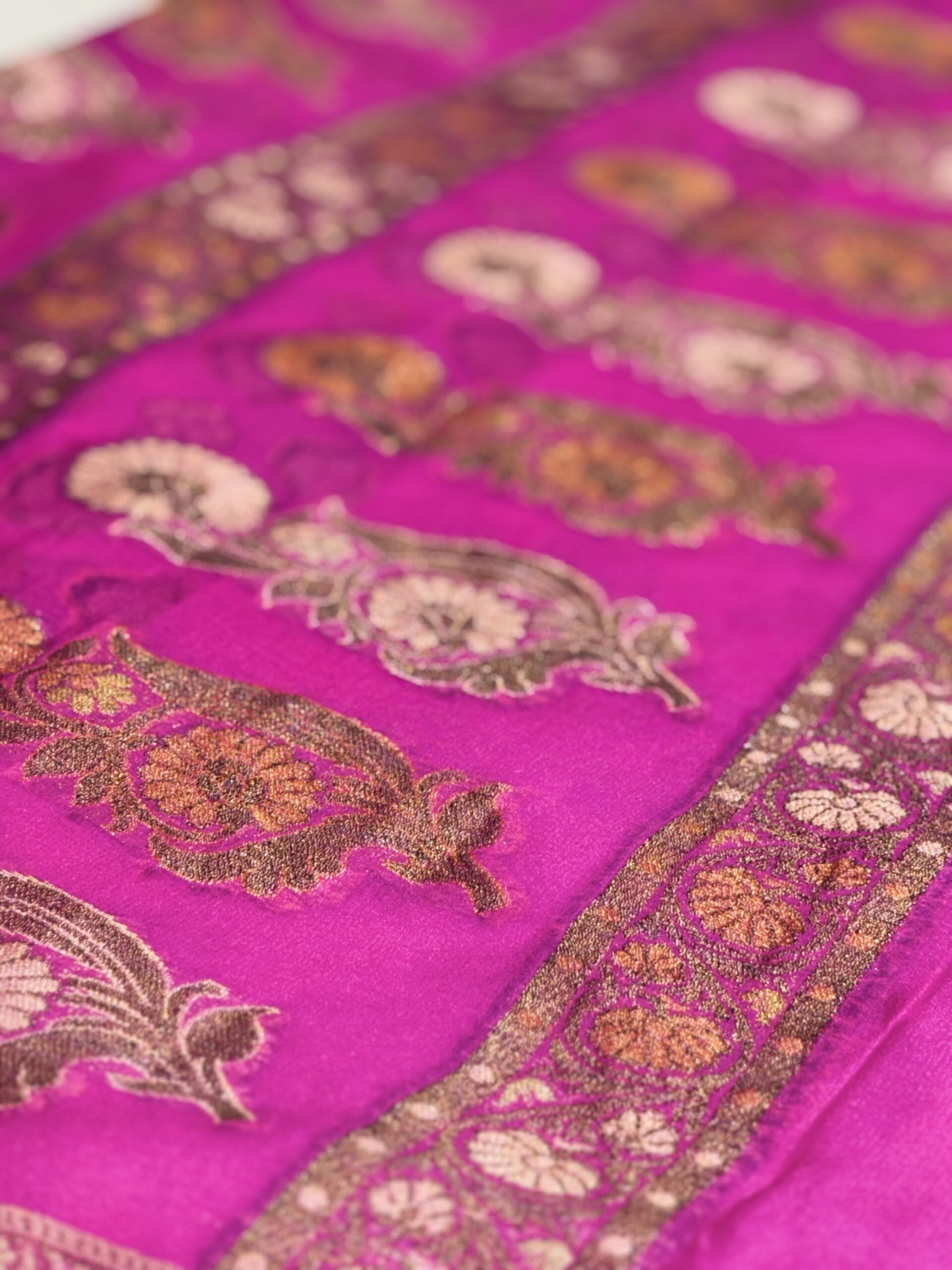 The craftsmanship in Banarasi sarees repre represents a rich legacy of Indian textile artistry, rooted in centuries-old traditions from the city of Varanasi Renowned for their intricate designs, luxurious silk, and exquisite zari work, Banarasi sarees are handwoven by highly skilled artisans, many of whom come from generations of master weavers. Techniques such as kadhua, meenakari, and the use of traditional jacquard looms allow for the creation of complex patterns and motifs inspired by persian and indian heritage. Each saree is a labor-intensive masterpiece, often taking weeks or even months to complete, reflecting the timeless value of slow fashion and cultural heritage.
