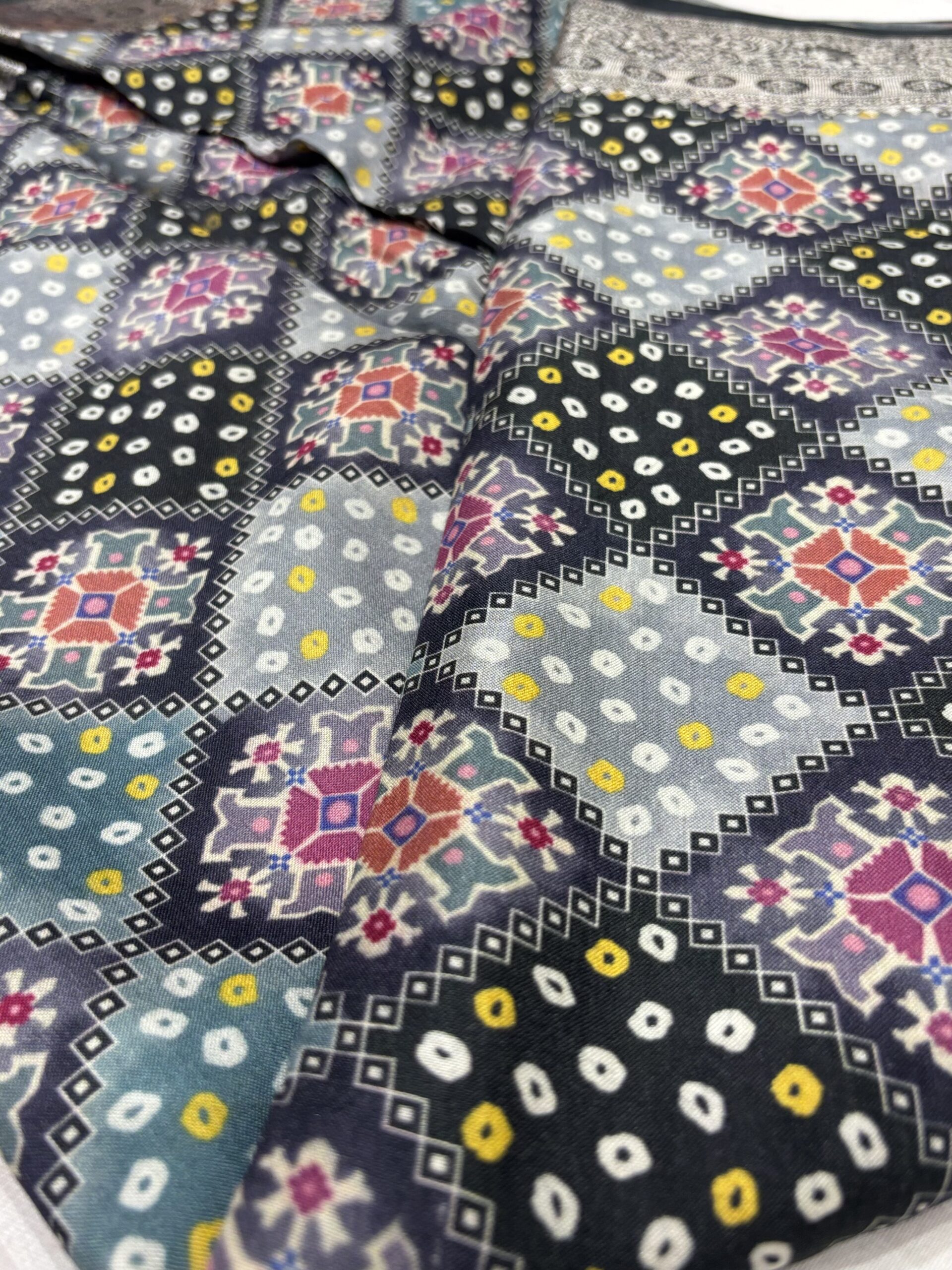 Be the first to review “Luxury Pure Crepe Silk Printed Saree – Black”