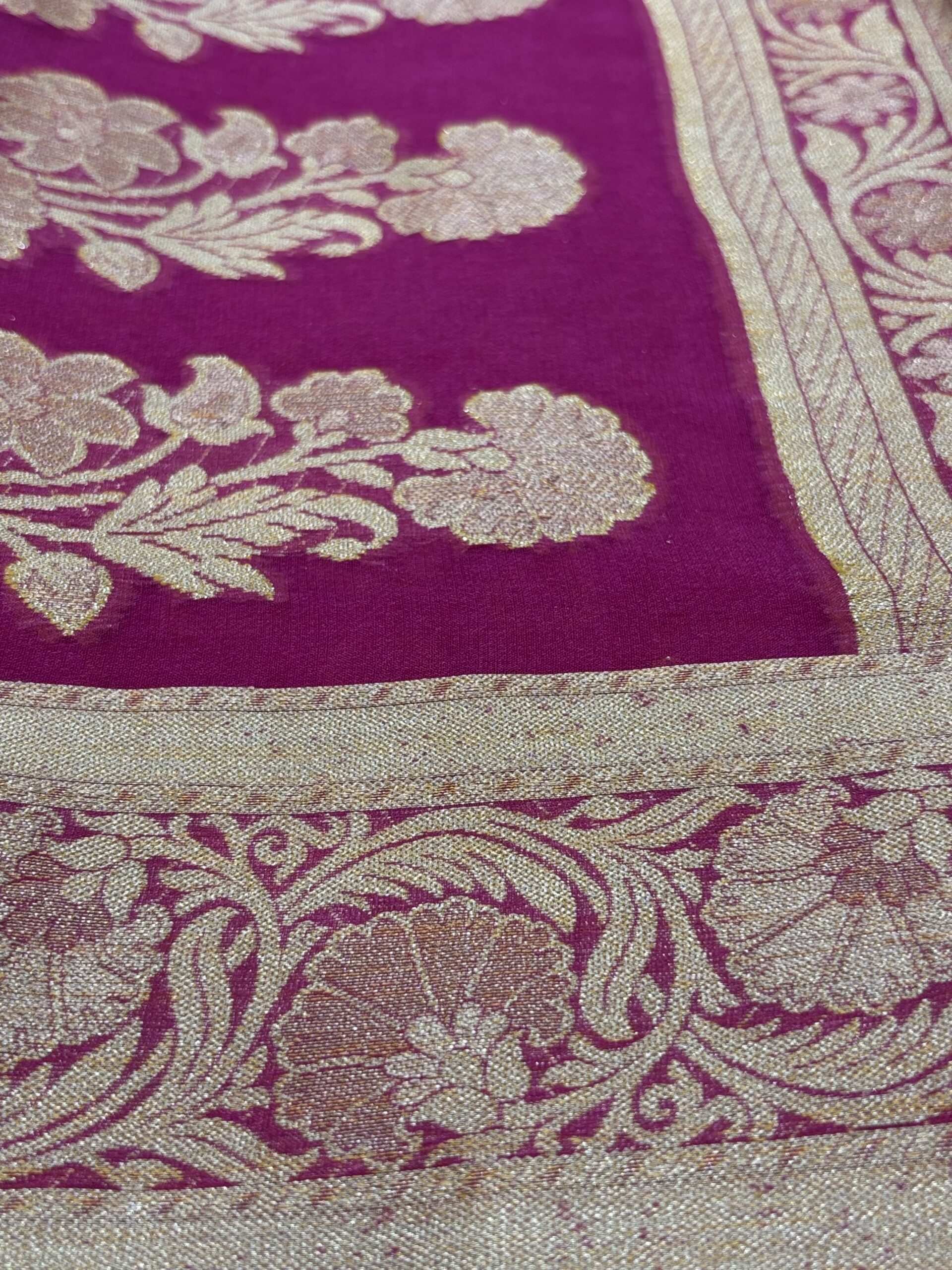 Be the first to review “Pure Silk Chiffon Saree- Dark Pink”
